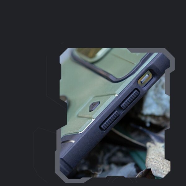 This is one of the most solid smartphone cases. The Nillkin model from the CamShield Armor Pro Magnetic Case series is distinguished by its military-inspired appearance and will tempt lovers of survival and the art of survival. The case fits the iPhone 14 Plus and perfectly protects the phone against damage caused by falls or scratches (for example by keys carried in a pocket). Raised edges around the screen and rear camera protect the phone from scratching these elements when it is placed on a flat surface. It has responsive buttons and port cutouts. Perfect for people who value style, quality and want to take care of their device. It has a sliding cover for the rear camera. Thanks to it, the camera glass is protected against scratches. There is also an additional advantage for people who value the privacy and security of their data. The covered camera prevents access to video recording if someone gains remote access to the phone and turns on the view from the main camera.
