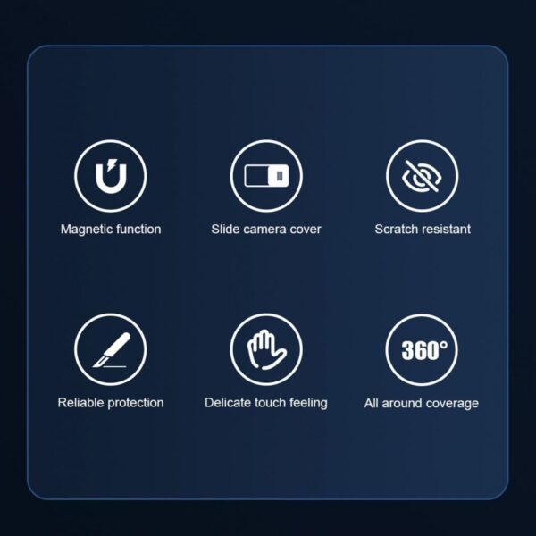 There is a sliding camera cover on the back of the case. Protects the camera glass against scratches during everyday use. When you need to record a video or take a photo, just slide the cover to reveal the lens.
