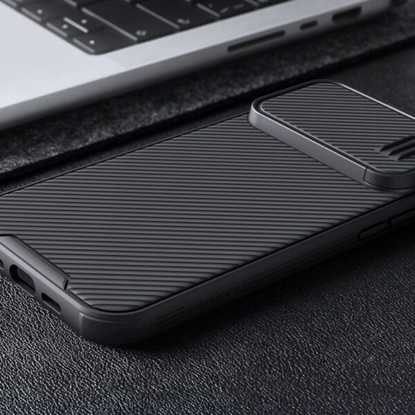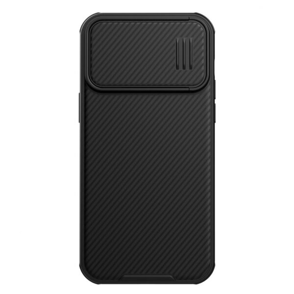 Armored iPhone 14 Pro Max case from the Nillkin CamShield S Case series with a black camera cover