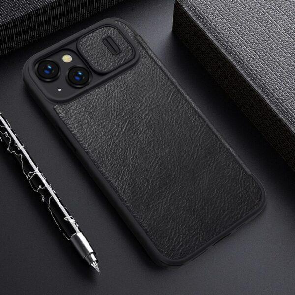 The Nillkin Qin Leather Pro Case has a natural leather texture – it has a very elegant, classic look . The cover with a flap prevents your phone from getting scratched and dirty . It has a sliding lens cover that protects the camera and your privacy . Precise cutouts for the charging port, speakers and buttons enable convenient use.