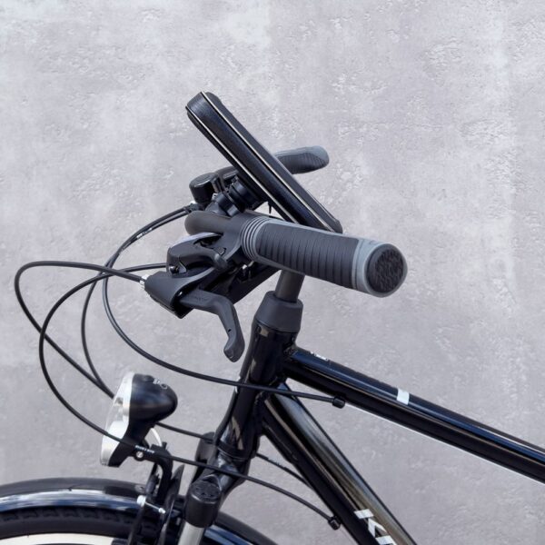 The Wozinsky WBHBK7 bicycle phone holder offers full adjustability . At its base, you'll find a convenient ball head that allows you to freely adjust the phone's angle . This makes setting the right position for your smartphone quick and incredibly easy. Equally important, the holder's design allows for quick removal of the entire cover—without having to undo the handlebar clamp. This allows you to take the cover and phone with you, for example, to the store for shopping or to work.