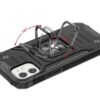 Tył pokrowca jest wbudowany niezwykle praktyczny uchwyt, Ring, który można założyć na palcu by pewniej trzymać telefon w dłoni. Pozwala też na przymocowanie telefonu do magnetycznego uchwytu samochodowego