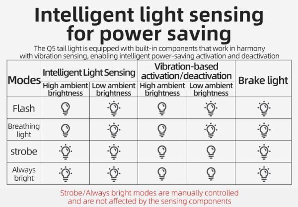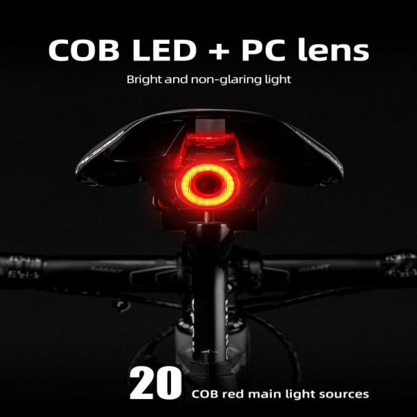 The most important advantages of the Rockbros Q5 rear bicycle light with intelligent stop system – black: