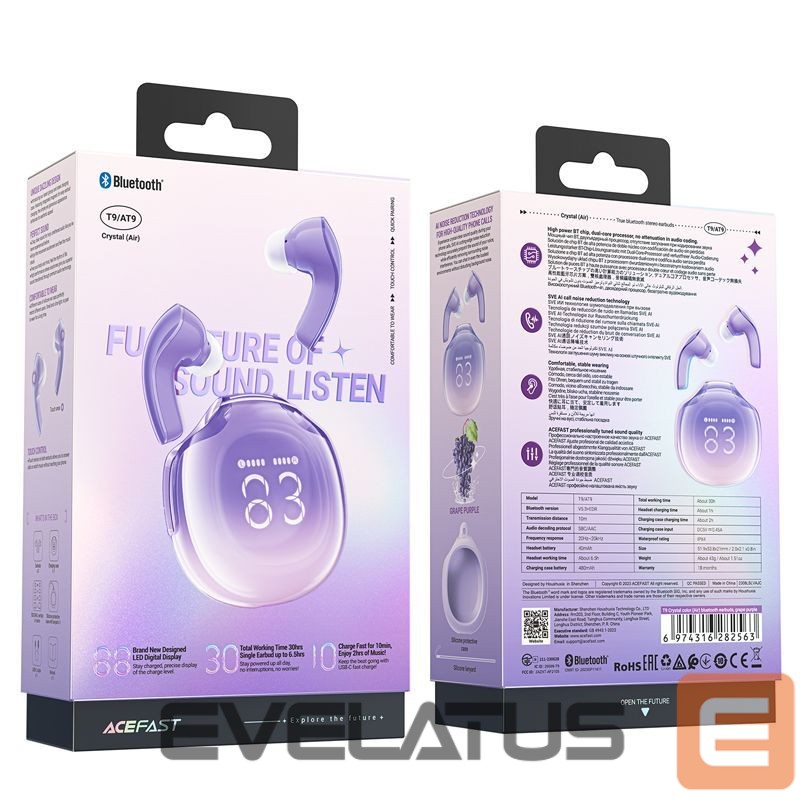 Acefast T9 Bluetooth 5.3 wireless headphones with display, in-ear, IPX4 certified – purple