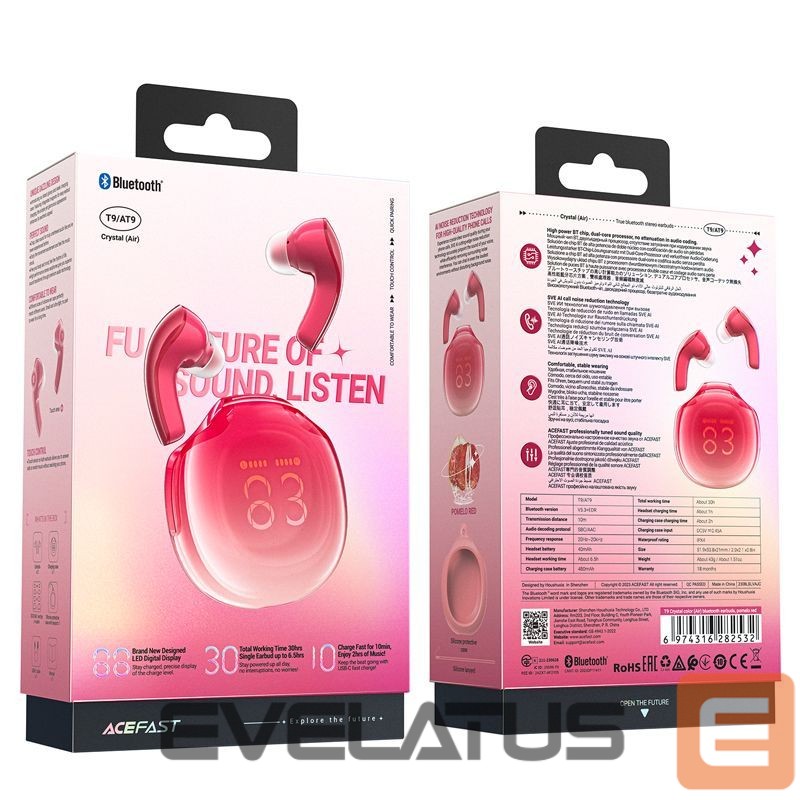 Acefast T9 Bluetooth 5.3 wireless headphones with display, in-ear, IPX4 certified – red