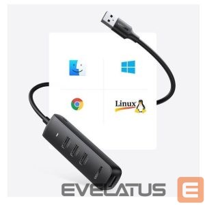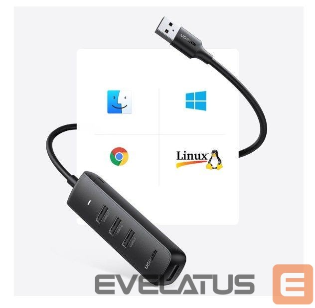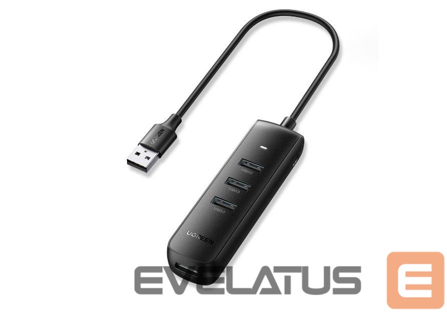 Üleminek Ugreen 4-in-1 USB HUB – 4x USB Type A 3.0 PD DC 12V 0.25m black (CM416 10915) Black