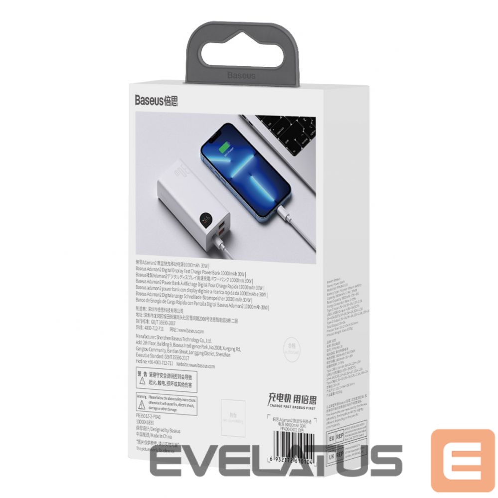 Väline aku Baseus Baseus Adaman2 power bank with digital display 2x USB-A / 1x USB-C 10000mAh 30W – white