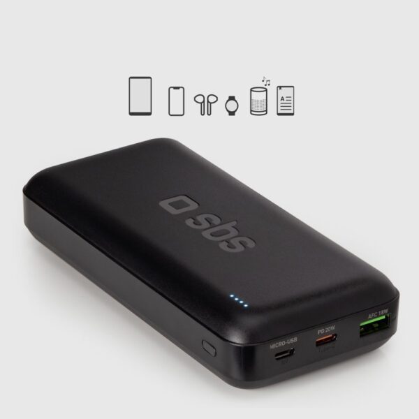 Väline aku SBS Powerbank SBS TTBB20000PD20K 20000 mAh 20W PD USB-C, USB-A, Micro-USB – black