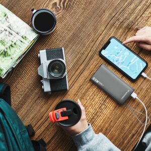 The huge capacity allows you to charge your smartphone, tablet or headphones multiple times without worrying about the power bank draining quickly.