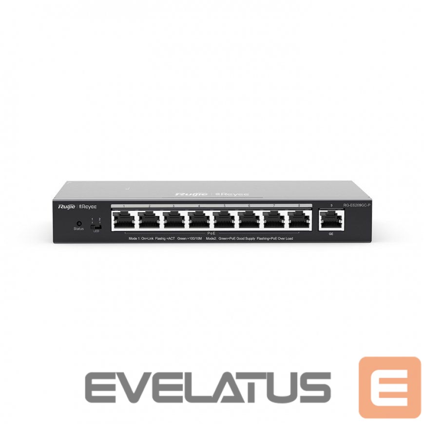 valvetarvikud Ruijie Networks RG-ES209GC-P tīkla pārslēgs Vadīts Gigabit Ethernet (10/100/1000) Power over Ethernet (PoE) Black