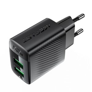 Acefast A86 2-Port USB-A Wall Charger Up to 12W – Black
