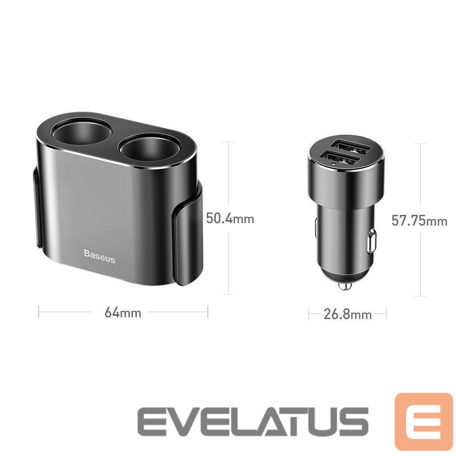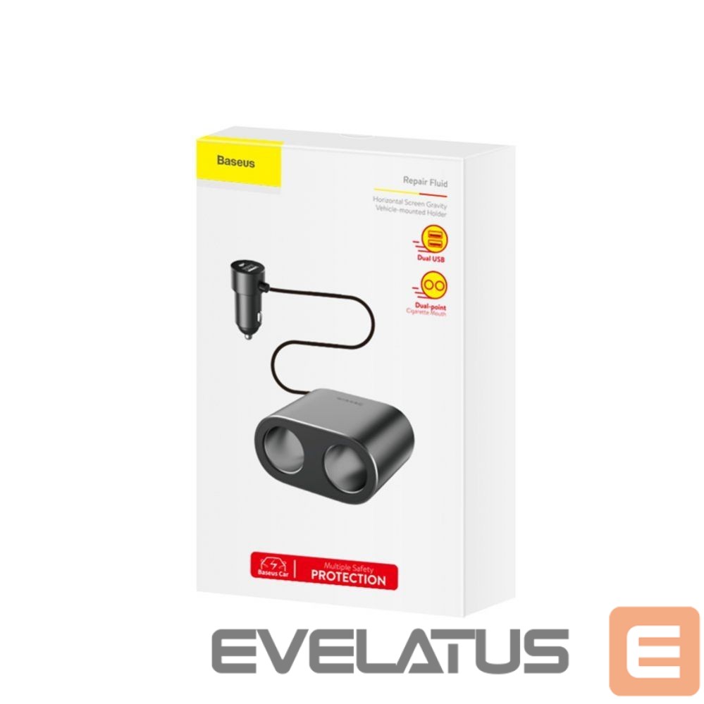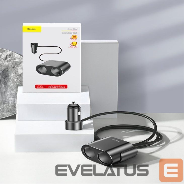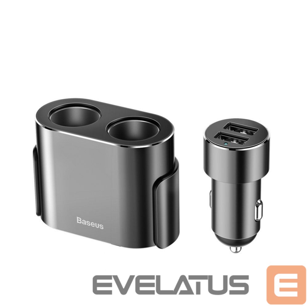 Baseus CRDYQ-01 splitter with 2 80W cigarette lighter sockets and 2 USB-A 3.1A ports – black