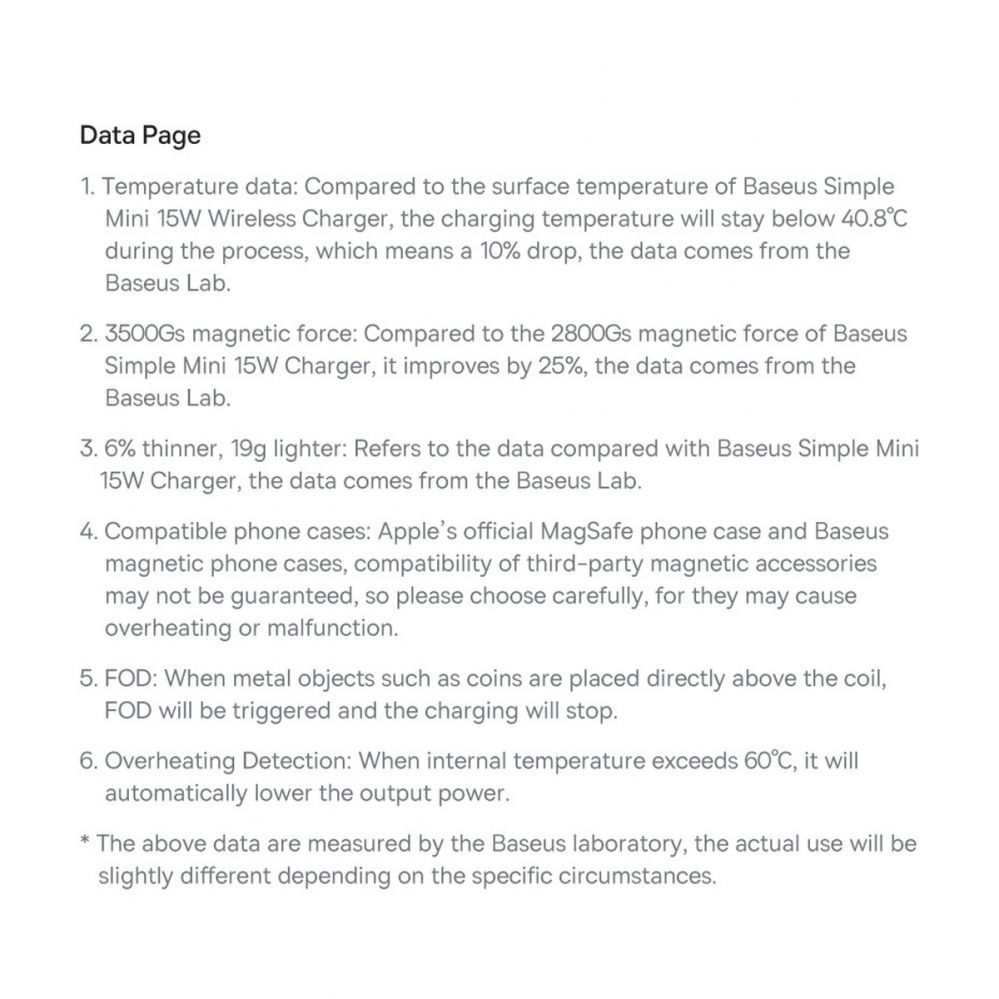 The Baseus charger has very good parameters and supports the most popular phone models equipped with the Qi, MagSafe wireless charging function. The gadget is made of PC material and equipped with protections to protect the equipment against damage or overheating. It is perfect for frequent use, and its design fits in with the appearance of modern residential or office interiors.