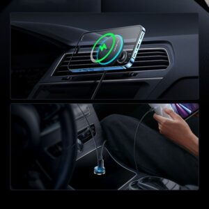 A functional Baseus CW01 car charger equipped with a 25W USB-C port and a holder with a 15W MagSafe charger for the air vent. This connection allows you to safely charge your iPhone, as well as your passenger's equipment, regardless of the type of connector on his phone! The charger is equipped with LED lighting, which also indicates the current status of the charger.