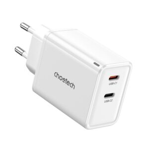Adapter Choetech Choetech PD6013 2x USB-C PD 65W GaN wall charger – white