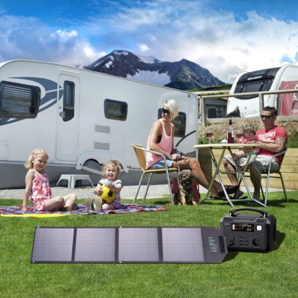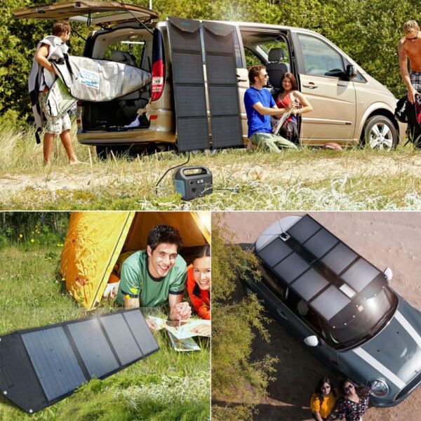 • It efficiently converts solar energy into electricity . Conversion efficiency is up to 20%, and the large panels are further supported by stands that position the charger at an optimal 45-degree angle