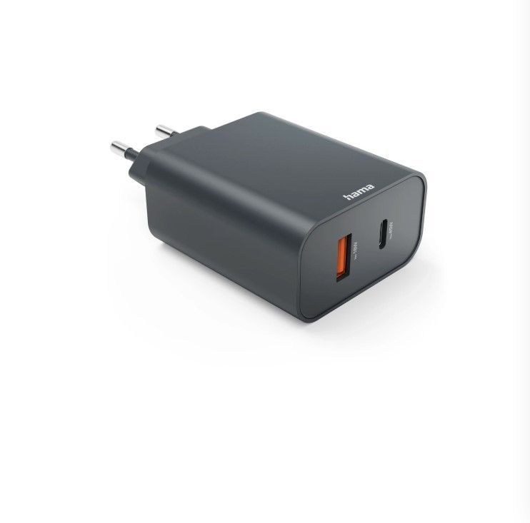 Adapter Hama Ecosential 45W PD USB-C USB-A Phone Charger Gray Black