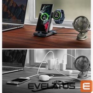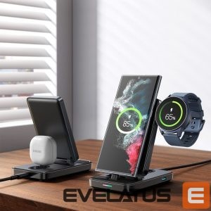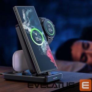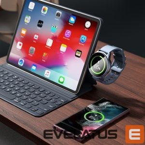 The Joyroom JR-WQS01 4in1 charging station allows you to charge your phone, headphones and watch at the same time. It is adjustable, so it can easily fit into any space on a desk, table or shelf. The built-in USB-A connector provides up to 5 W of power. The detachable smartwatch charger makes it much easier to carry and store the charging station. The set includes a USB-A – USB-C cable.