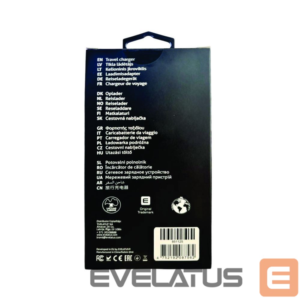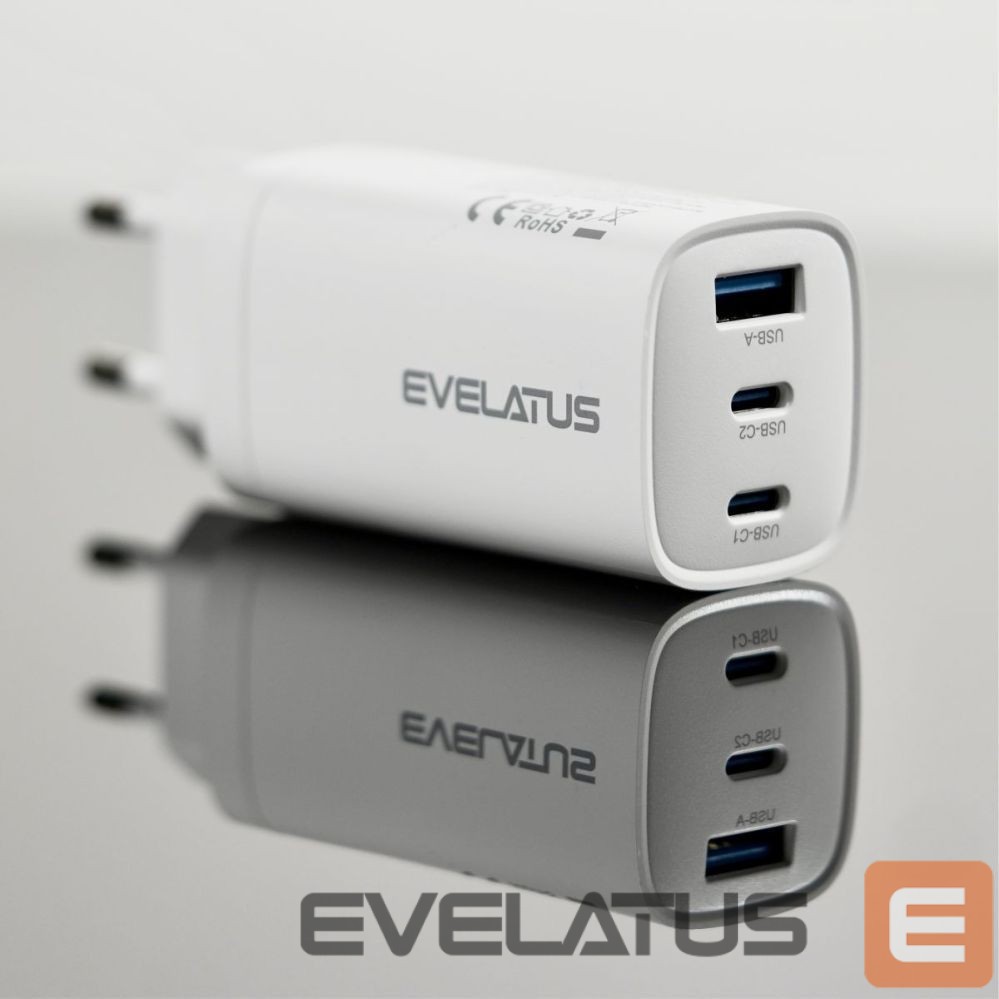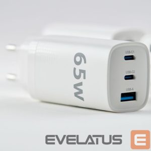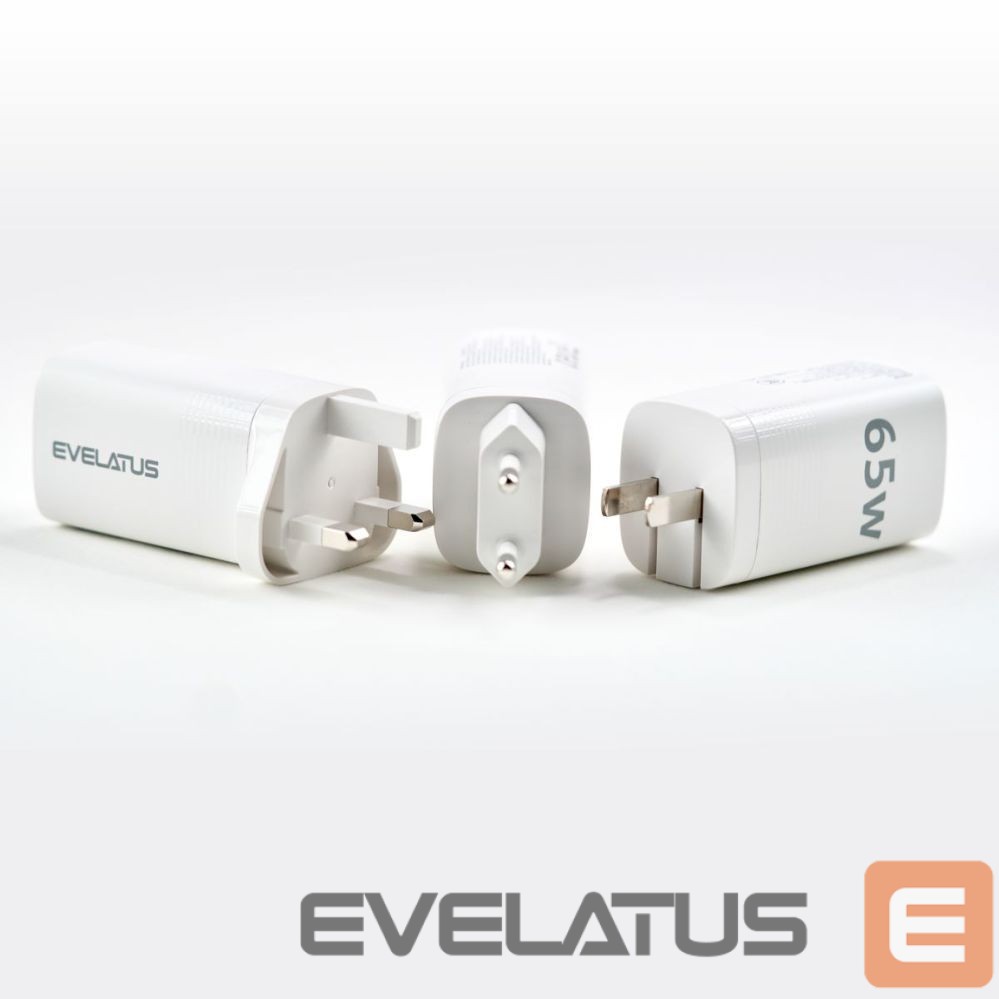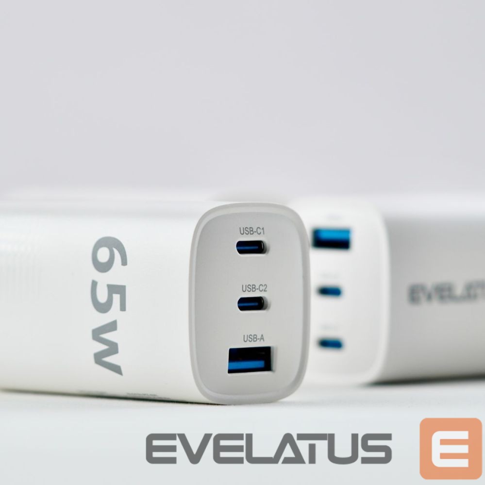 Adapter Evelatus 65W Max Fast Charger EU USB-C1/USB-C1/USB-A White
