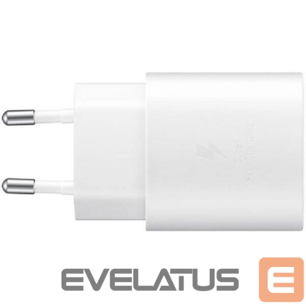 Samsung travel network charger with USB-C output, maximum power 25W and USB-C data cable.