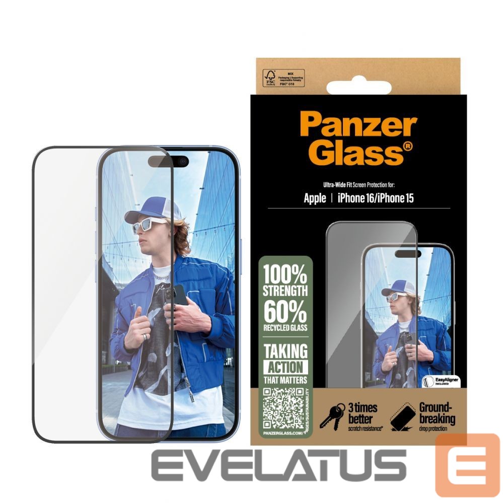 Back panel cover PanzerGlass Screen Protector iPhone 16 / iPhone 15 | Ultra-Wide Fit |