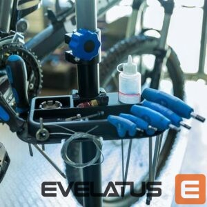 The Rockbros MP-02 service stand is an irreplaceable friend of both service technicians and amateurs. It has screws with knobs that provide strong pressure. Four metal legs guarantee stability. It is versatile – you can mount any type of bike in it. Made of steel and durable ABS plastic, it ensures long-term and trouble-free operation. The stand is height adjustable and adapts to your height and the size of the mounted bike. Simple disassembly and almost immediate readiness for operation make service time shorter. It has a shelf for tools that makes it easier to keep order.
