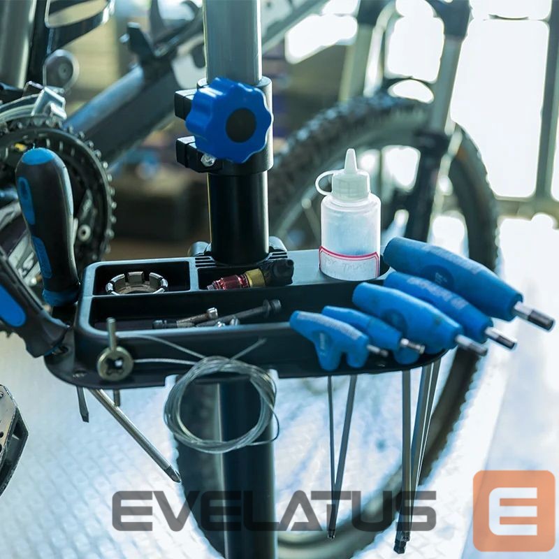 - Makes it easier to stay organized. The built-in tool shelf prevents the loss of tools and dismantled bicycle parts.