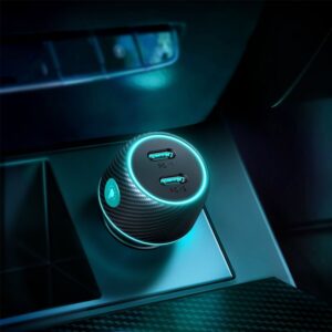 The 2x USB C Joyroom JR-CCN02 car charger allows you to charge two devices simultaneously, shortening the charging time of tablets, smartphones, smartwatches and power banks. It supports fast charging protocols such as Quick Charge 3.0, Power Delivery 3.0, Samsung AFC, Huawei FCP and PPS. Equipped with multi-color LED backlight and a separate control button, it ensures both aesthetic appearance during the day and functionality at night. The Joyroom JR-CCN02 car charger adjusts the charging parameters to the needs of your device.