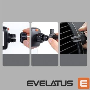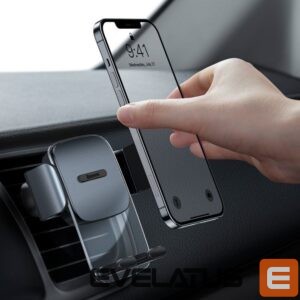 The holder is attached to the dashboard or ventilation grille, thanks to which it does not limit visibility in any way. In addition, it has rubber overlays on the jaws for a solid installation without scratching the airflow.