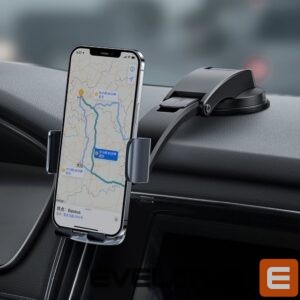 Car holder to be mounted on the dashboard of the car or in the ventilation grille. The gadget is extremely easy to use, just put the phone on it and clench your jaw. It has a triangular structure that ensures stability while driving, great adjustment possibilities (including 360-degree rotation) and rubber pads, thanks to which we will not scratch any element of the car. In addition, a special cutout that allows you to connect the charger.