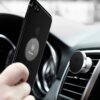 phone attached to the Baseus magnetic car holder using a Baseus magnetic plate