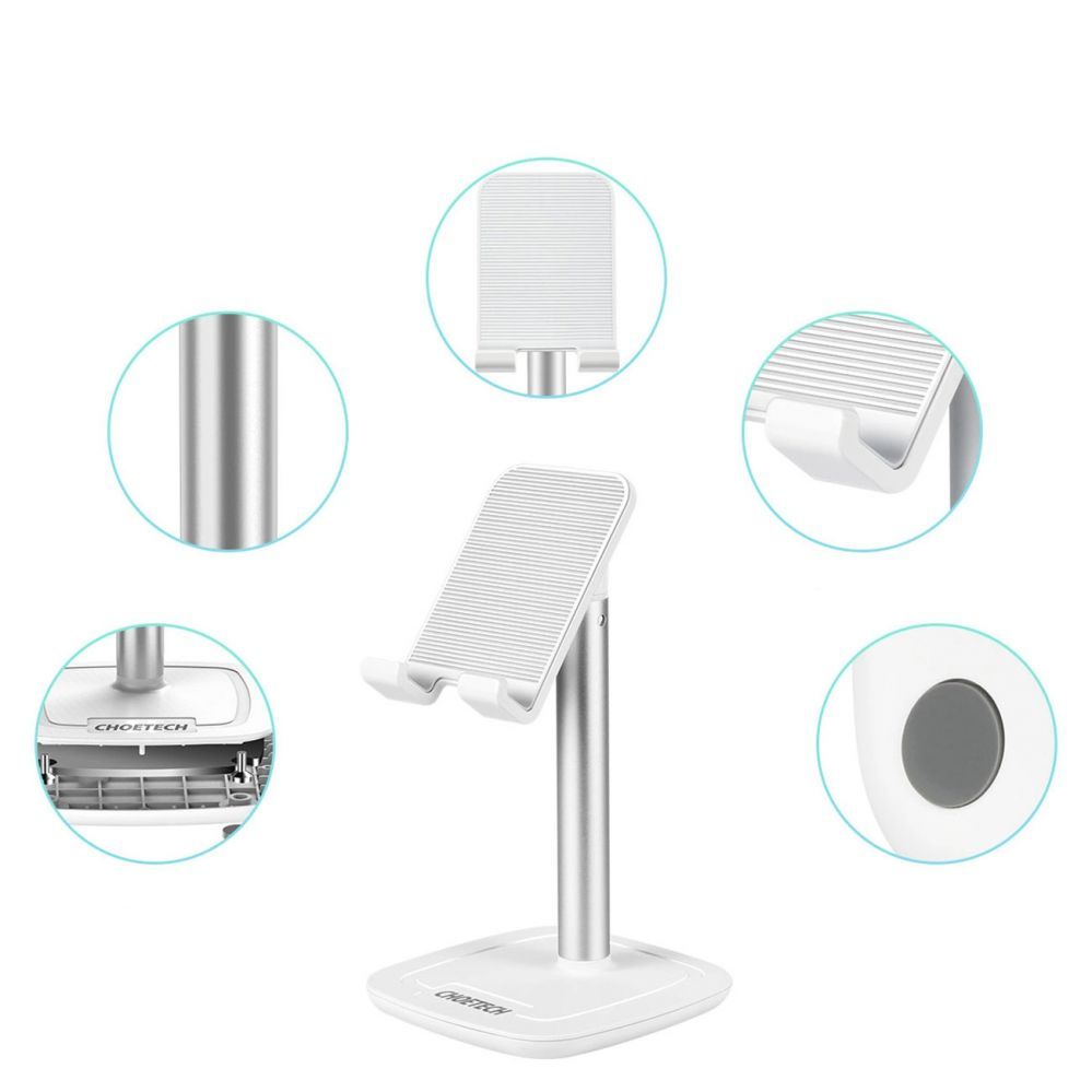 Choetech H035 aluminum stand for a phone or tablet with adjustable tilt angle – white and silver