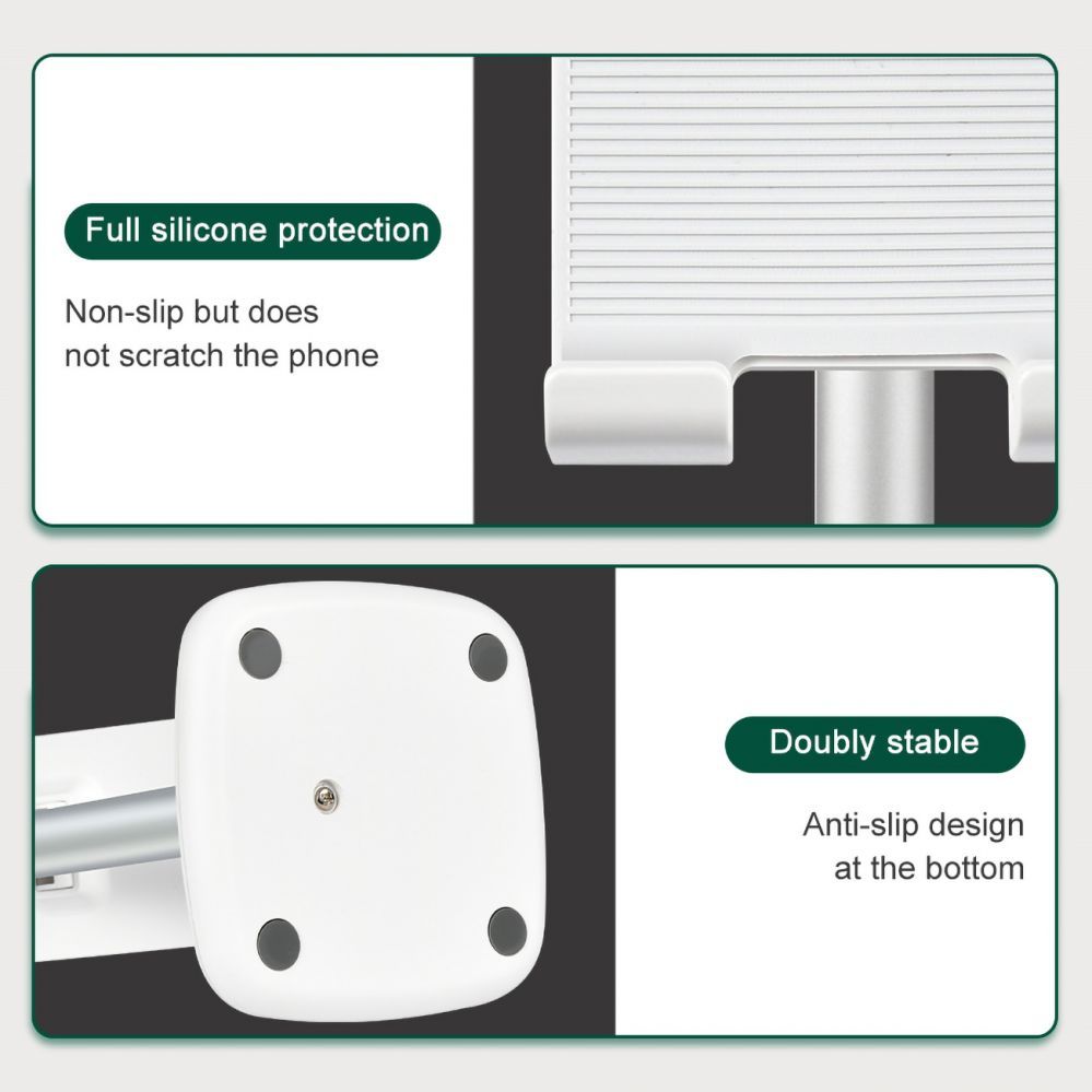 Anti-slip silicone pads in the Choetech H035 stand provide additional stability and protection for your device and the surface on which the holder stands. Silicone prevents the handle from accidentally moving and protects the device from scratches.