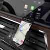 A gravitational car holder to be mounted on the car's ventilation grille. It has large adjustment possibilities (including 360-degree rotation) and rubber covers, thanks to which we will not scratch the airflow. You can easily put a phone connected to the charger on it, nothing will prevent you from driving the car at the same time.