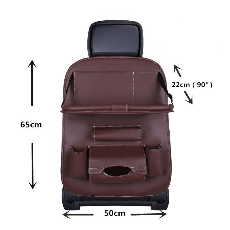 The organizer is made of a durable, waterproof material that will not be damaged or soaked. You can easily clean it with a damp cloth, because the eco-leather does not absorb dirt. But that’s not all. The shelf, which can be used in two positions, can support a weight of up to 15 kg. Thanks to this, you can set anything you want on it, for example drinks that are necessary while traveling.