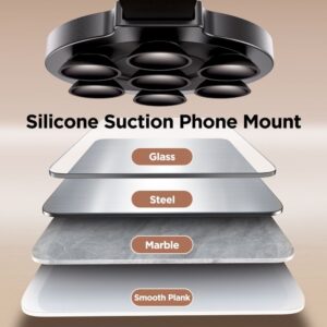 - It holds the phone safely on any clean and smooth surface . It has as many as 7 suction cups, 7.65 mm wide.