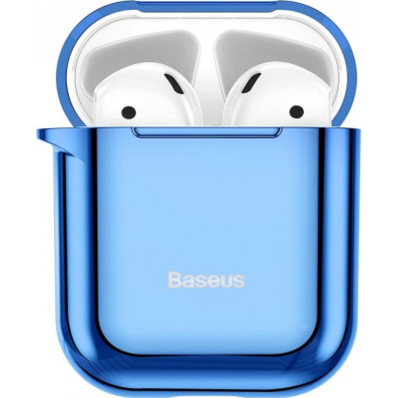 Back panel cover Baseus Metallic Shining Ultra-thin Silicone Protector Case with Hook for AirPods 1/2 Blue