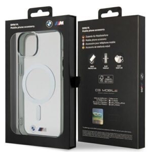 Back panel cover BMW BMW BMHMP14SHCRS iPhone 14 6.1" case transparent hardcase Silver Ring MagSafe