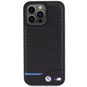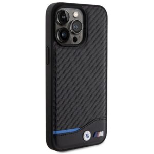 Back panel cover BMW BMW Leather Carbon case for iPhone 15 Pro Max – black