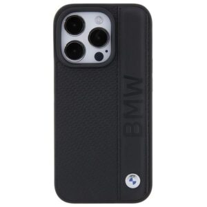 Back panel cover BMW BMW Leather Textured & Stripe case for iPhone 15 Pro – black