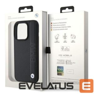 Back panel cover BMW BMW Leather Textured & Stripe iPhone 15 Pro Max Case – Black