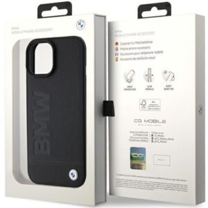 Back panel cover BMW BMW MagSafe Leather Hot Stamp case for iPhone 15 Plus – black