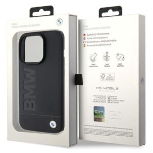 Back panel cover BMW BMW MagSafe Leather Hot Stamp case for iPhone 15 Pro – black