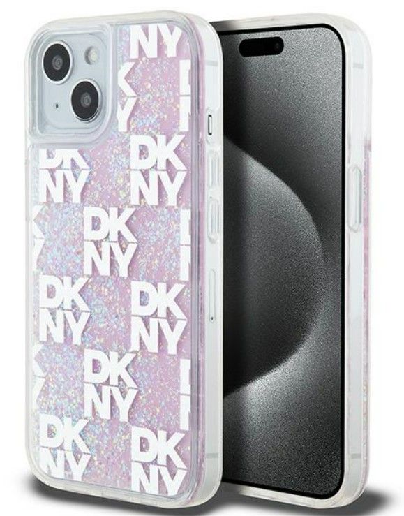 Back panel cover DKNY Apple iPhone 15 hardcase Liquid Glitter Multilogo Pink