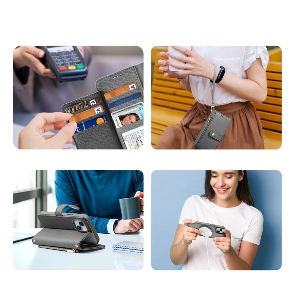 The zippered wallet allows you to store essentials like cards and cash conveniently and safely. The magnetic mechanism allows you to quickly detach it when you need it.