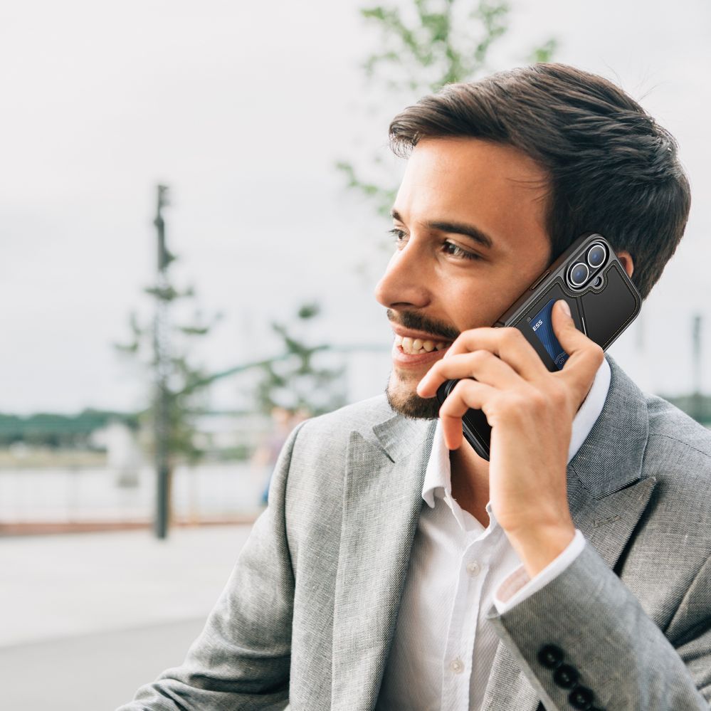 Want to enjoy the convenience of MagSafe charging while keeping your cards safe? The Dux Ducis Rafi ll Mag case is the perfect solution for you. It provides full protection for your smartphone while conveniently storing up to two RFID-blocked cards. The adjustable vertical stand allows you to use your phone freely during video calls, while the raised edges protect the screen and camera from damage. Made of durable materials, the case guarantees effective protection against drops and impacts.
