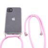Back panel cover Evelatus Apple iPhone 11 Silicone Transparent with Necklace TPU Strap Transparent Pink