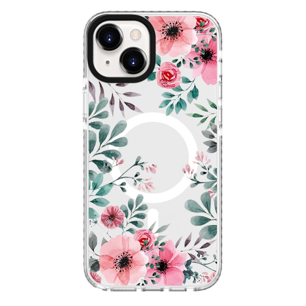 Back panel cover Evelatus Apple iPhone 15 Plus PC+TPU With MagSafe Customized Print Flower Transparent