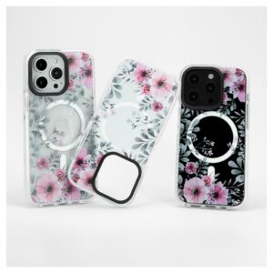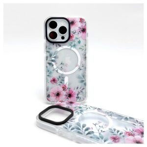 Back panel cover Evelatus Apple iPhone 15 Pro Max PC+TPU With MagSafe Customized Print Flower Transparent