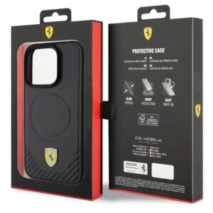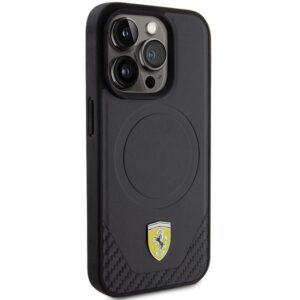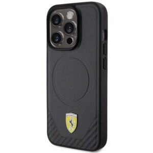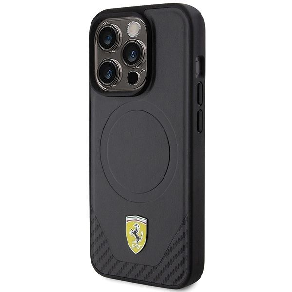 Back panel cover Ferrari Ferrari Carbon Metal Logo MagSafe case for iPhone 15 Pro – black